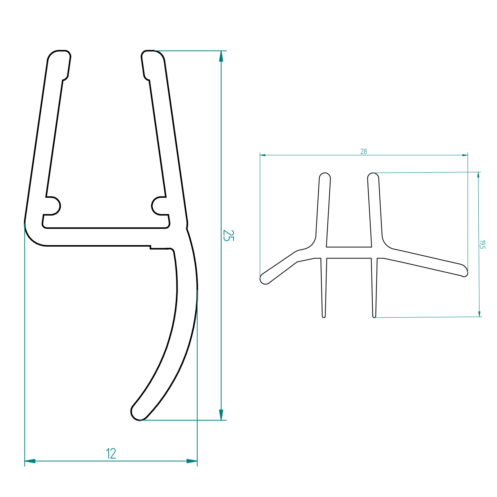 1x Duschdichtung, gerade, senkrecht, PK1208
