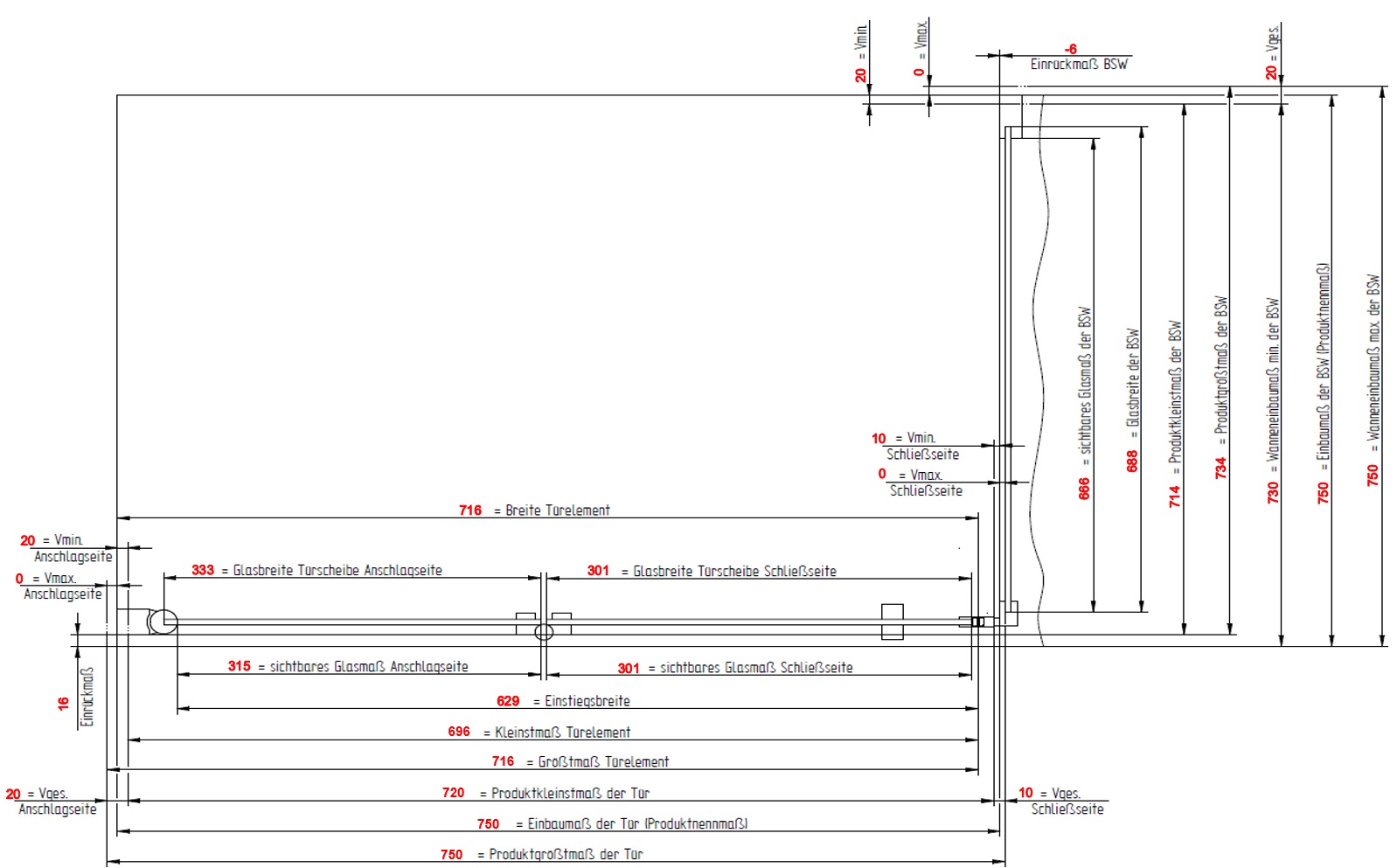 | Abtrennungsart: | Nische, Tür für Seitenwand |