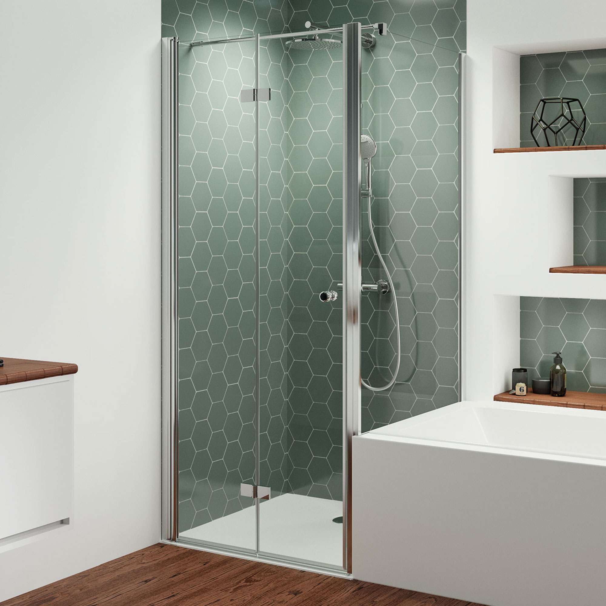 • Drehfalttür für Nische oder zur Kombination mit Badewannenseitenwand auf der Wanne (Typ 6119 rechts)