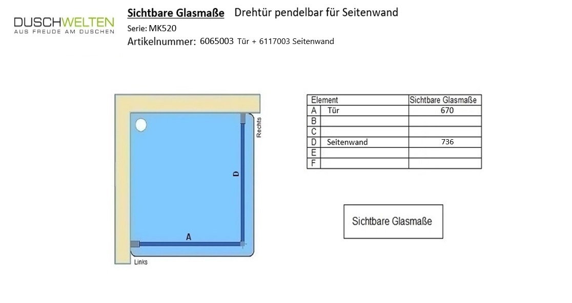 - Drehtür für Seitenwand Typ 6069 oder Badewannenseitenwand neben der Wanne Typ 6120
