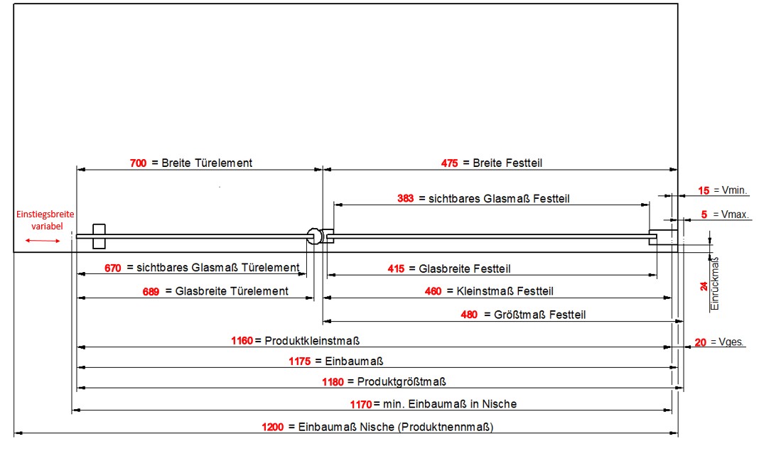 Produktinformationen "MK500 Duschwand mit bewegl. Element in Flucht, Anschlag rechts"