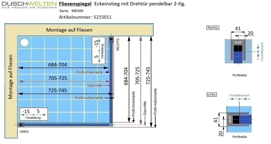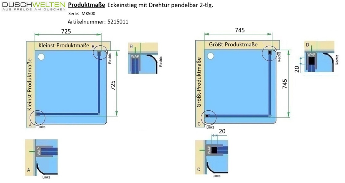 Produktinformationen "MK 500 Eckeinstieg Drehtür 2-teilig"
