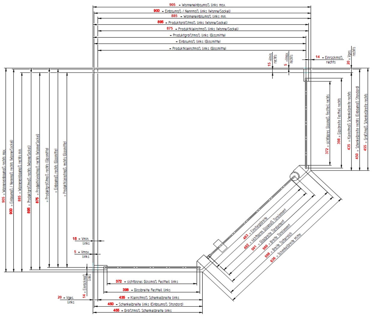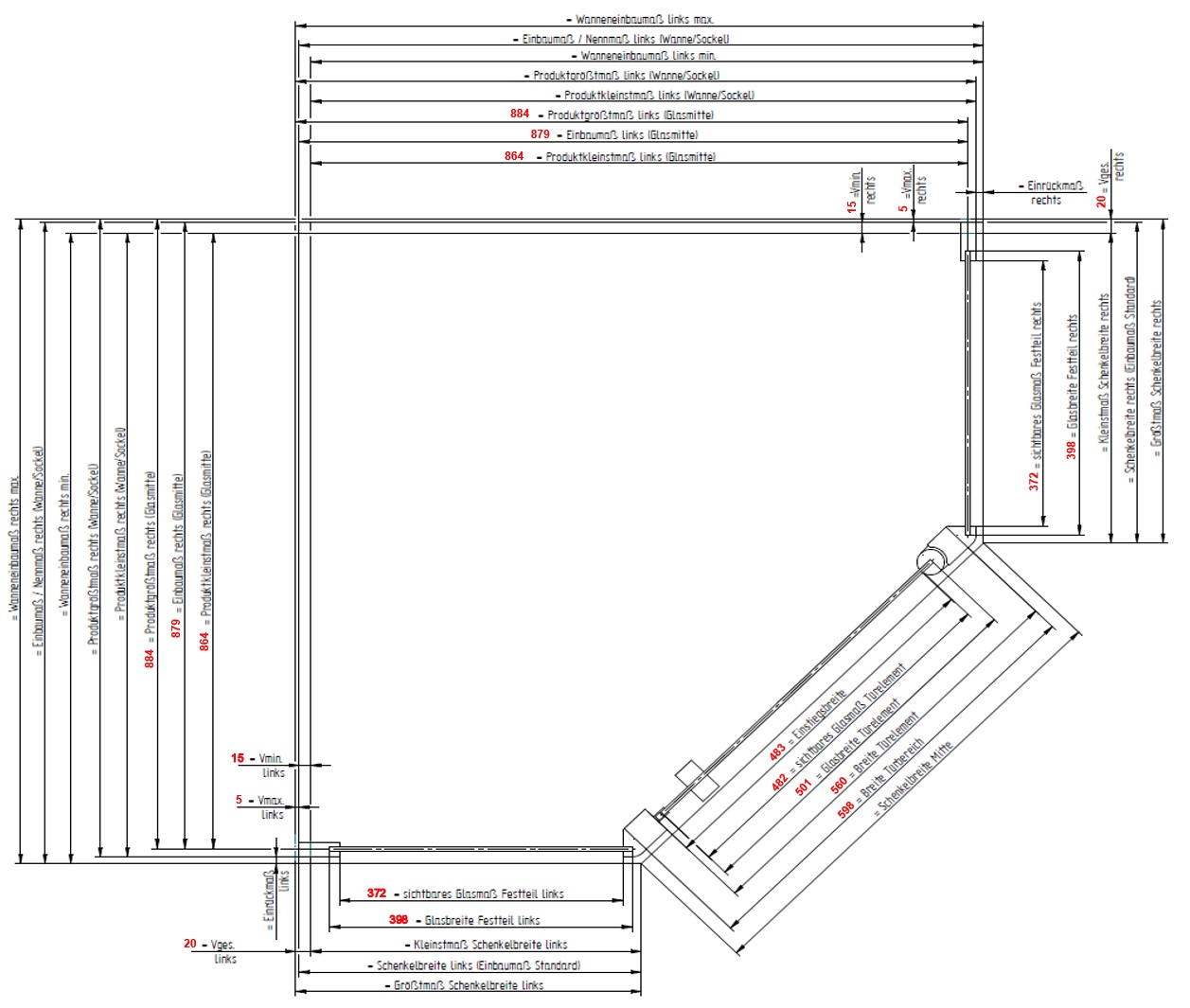 Bei Bestellungen bitte immer den Typ oder die Außenkante der vorhandenen bereits eingebauten Duschwanne angeben.