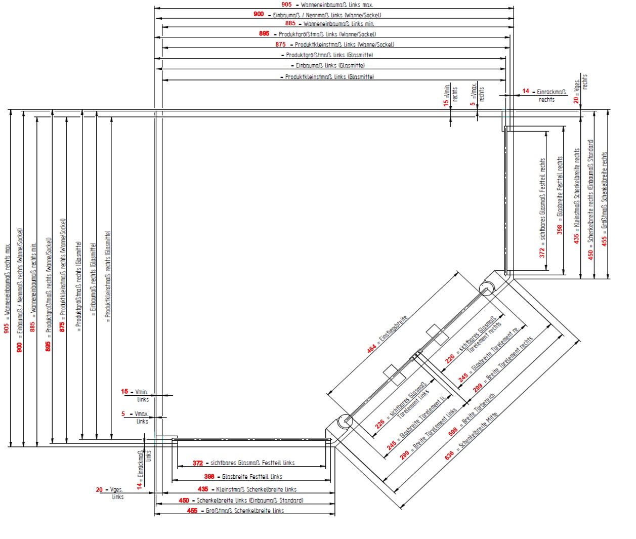 Bei Bestellungen bitte immer den Typ oder die Außenkante der vorhandenen bereits eingebauten Duschwanne angeben.