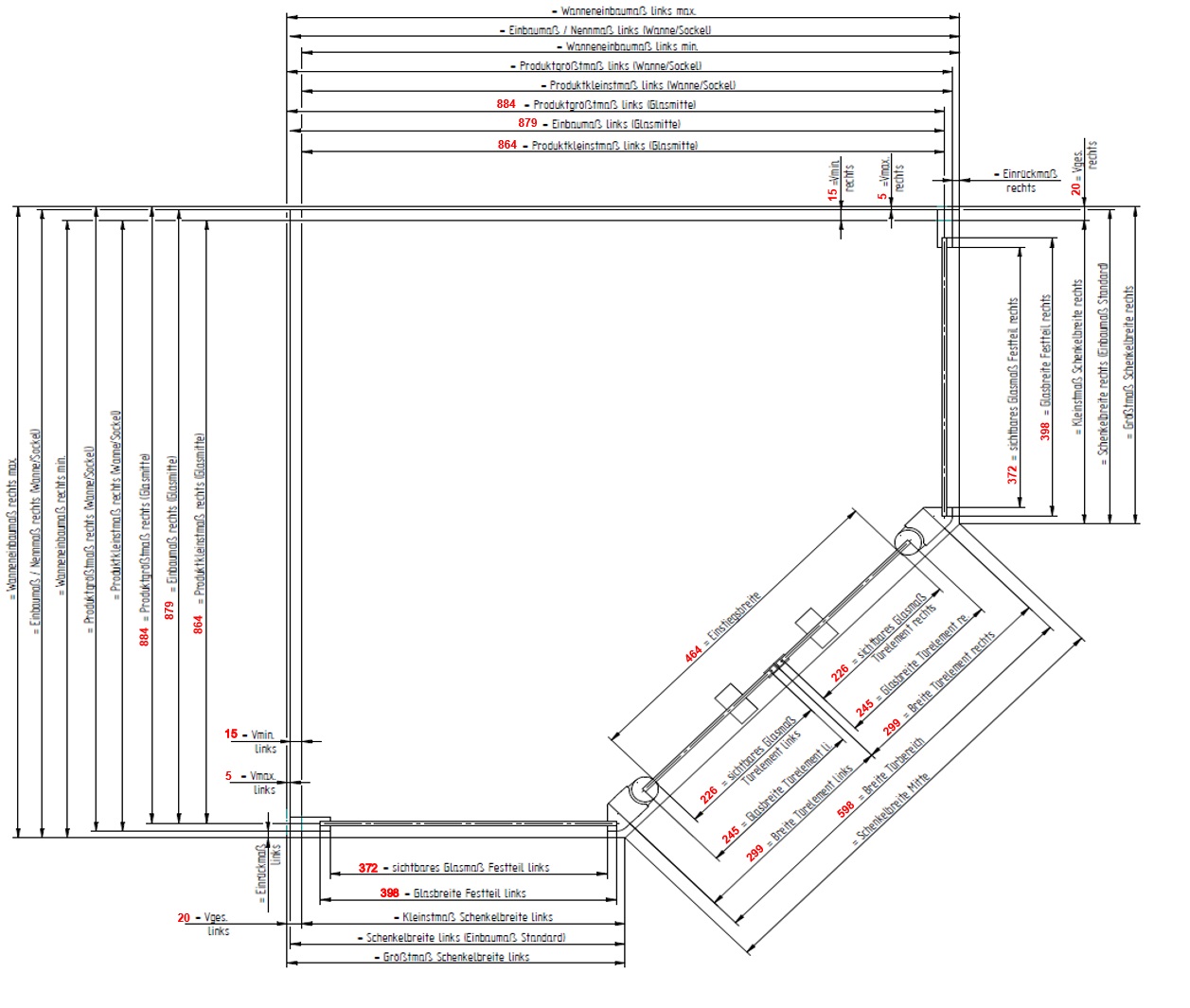 Abtrennungsart: | Fünfeckdusche |