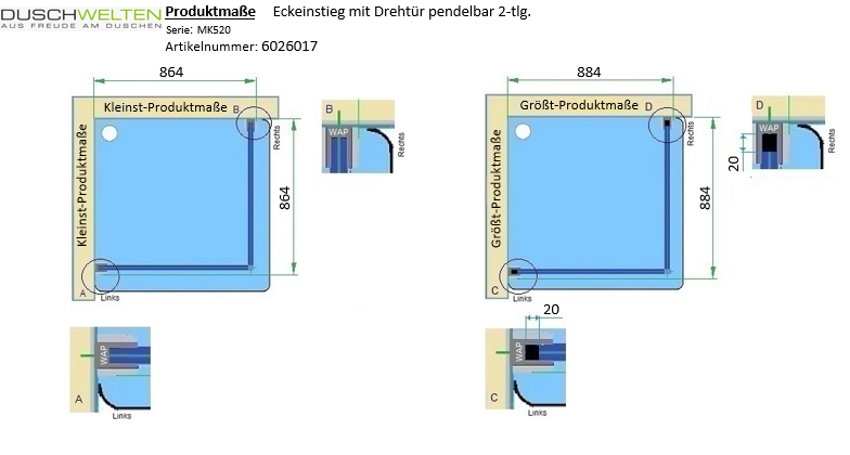 Produktinformationen "MK 520 eckig Eckeinstieg Drehtür 2-teilig, eckig"