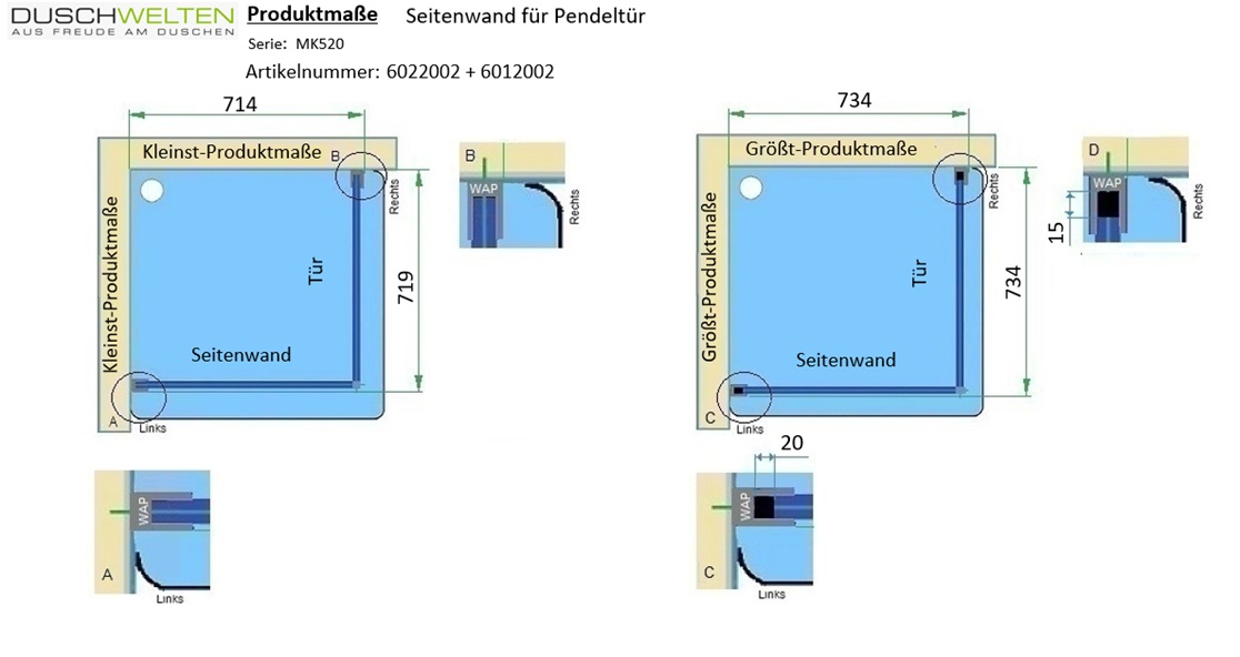 Maß  Maß-Typ   Produktmaß   Wanneneinbaumaß  Fliesenmaß (Glasmitte auf Fuge)  Höhe + 35 mm Stabi.