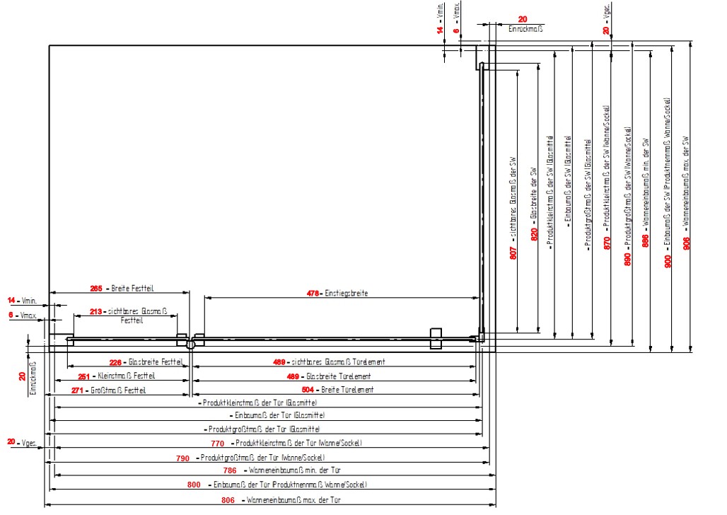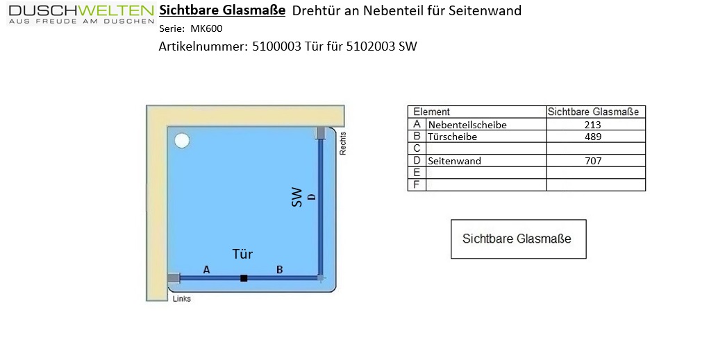 Produktinformationen "MK 600 Drehtür mit Festteil, Anschlag links, für Seitenwand/Badewannenseitenwand"