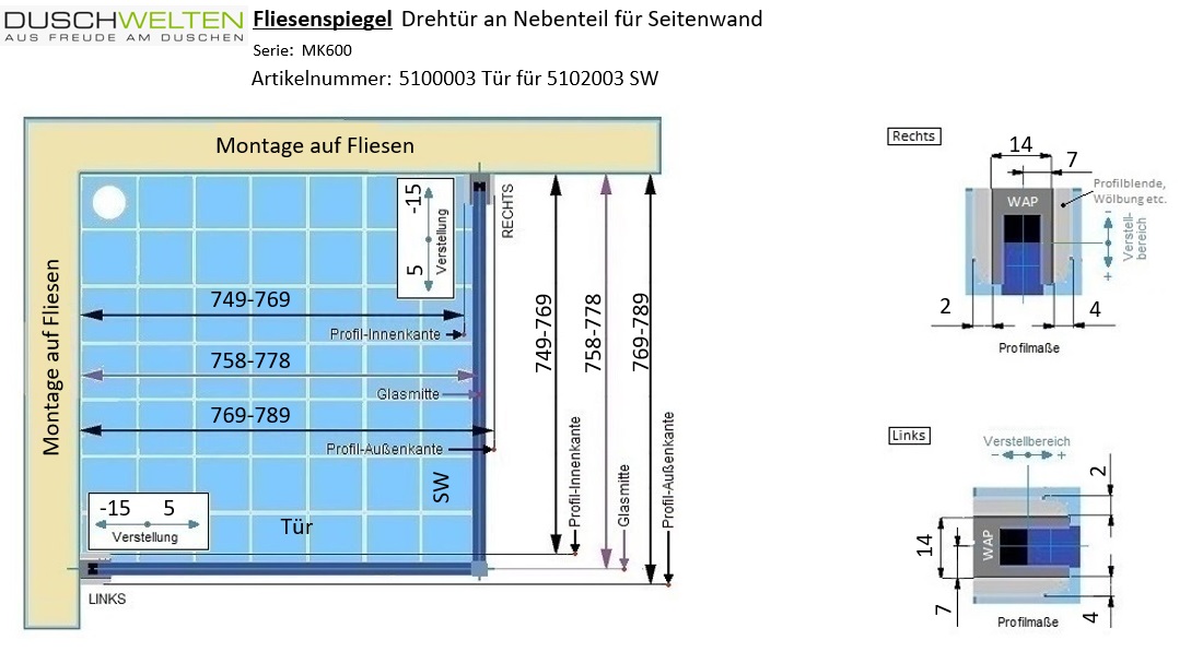 • zur Kombination mit einer MK600 Seitenwand (Typ 5102) oder Badewannenseitenwand (Typ 5115)