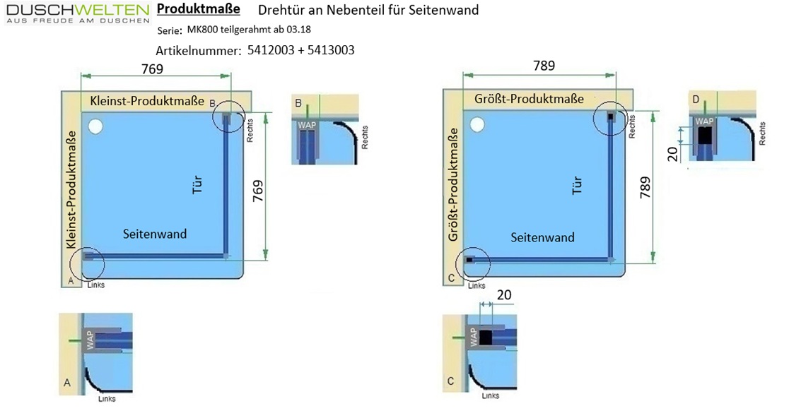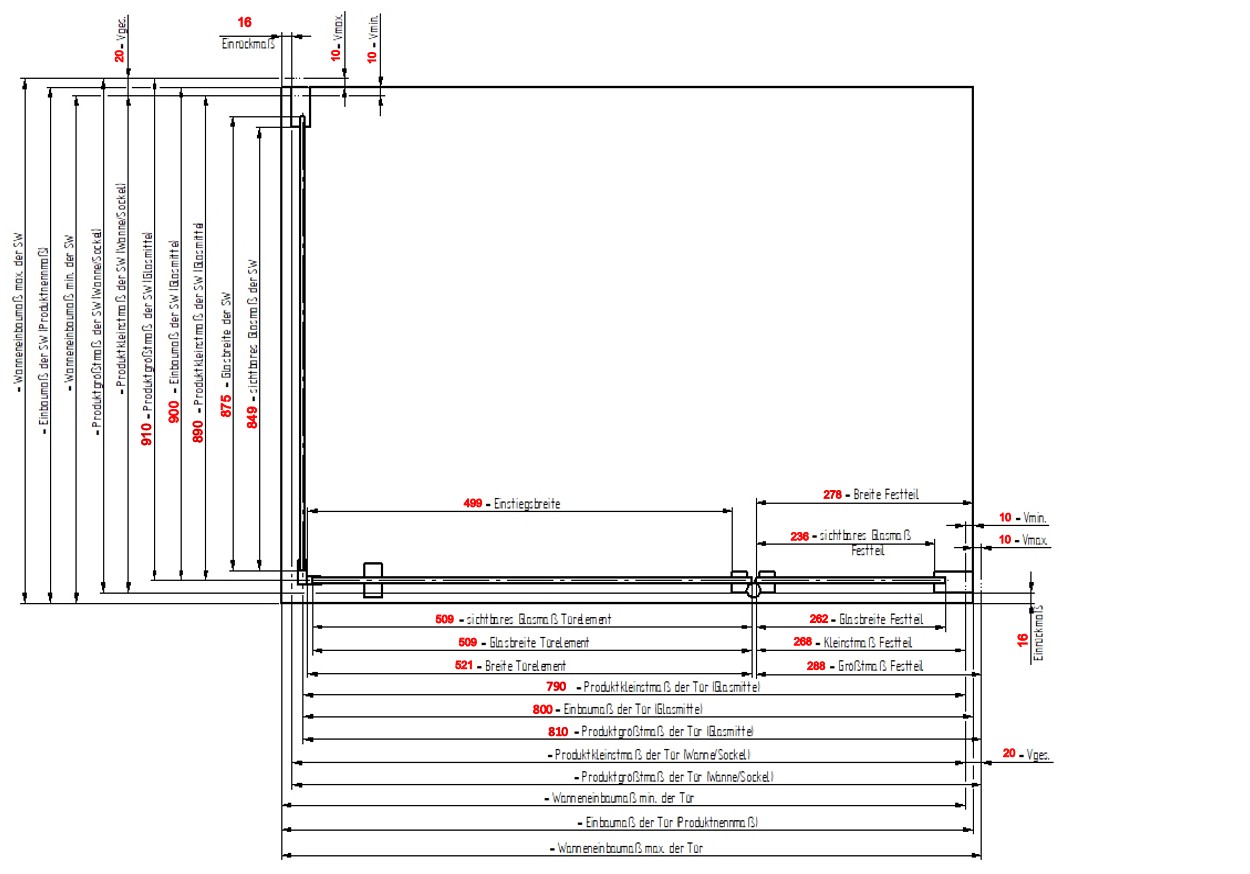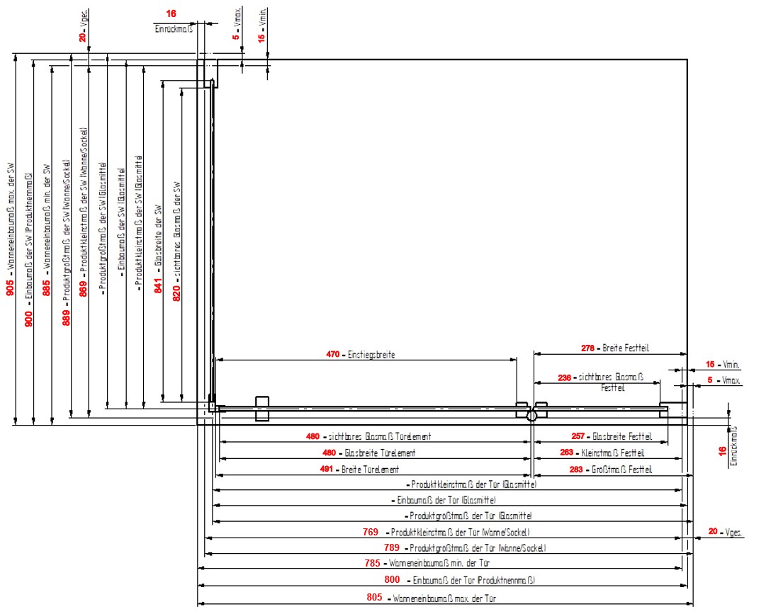 Produktinformationen "MK 800 Drehtür mit Festteil für Seitenwand, Anschlag rechts"