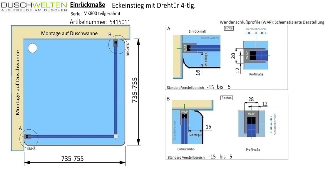 Maß Maß-Typ Festteilbreite Produktmaß (links/rechts) Wanneinbaumaß (links/rechts) Fliesenmaß (Glasmitte auf Fuge) (links/rechts) Einstiegsbreite Höhe + 35mm Stabi.