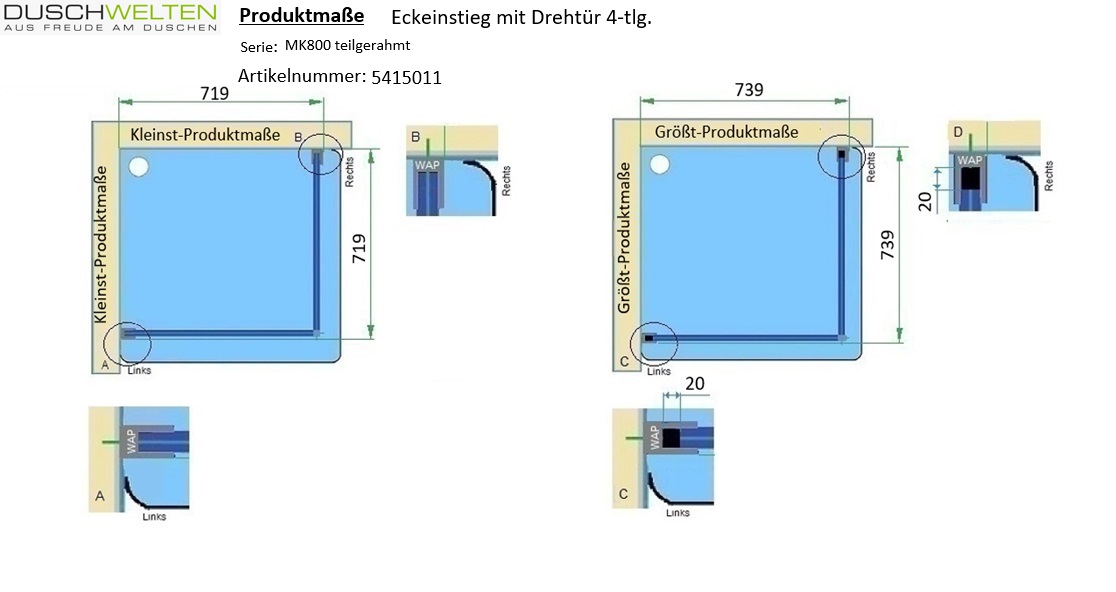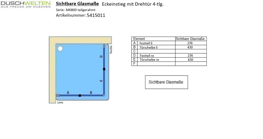 Produktinformationen "MK 800 Eckeinstieg Drehtür 4-teilig"