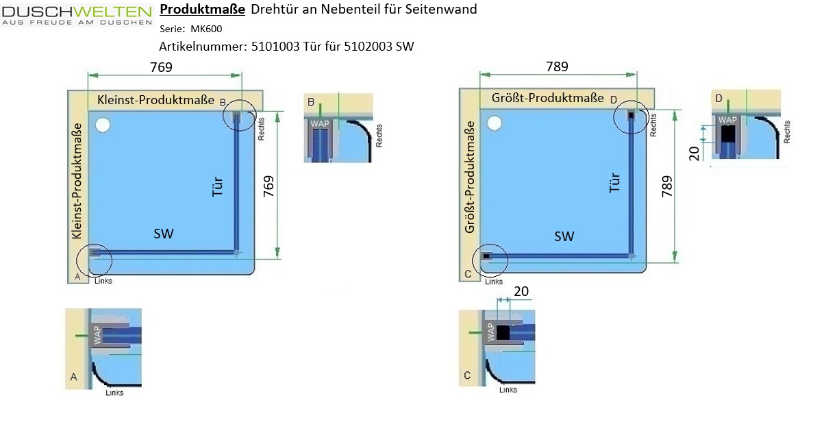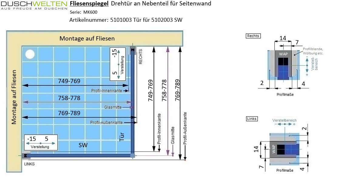 - zur Kombination mit einer MK600 Seitenwand (Typ 5102) oder Badewannenseitenwand (Typ 5115)