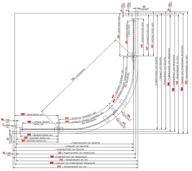 Produktinformationen "MK600 Runddusche Drehtür 4-teilig, Radius 500"