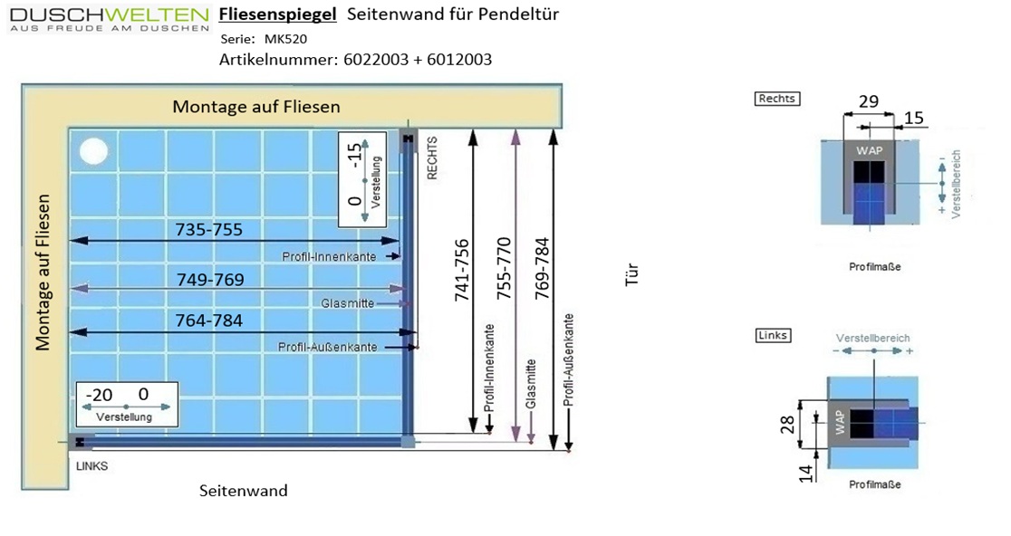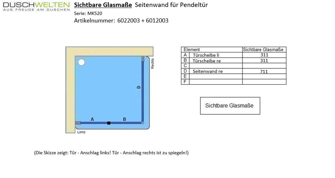 • Pendeltür zur Kombination mit Seitenwand (Typ 6113 rechts / 6022 links)