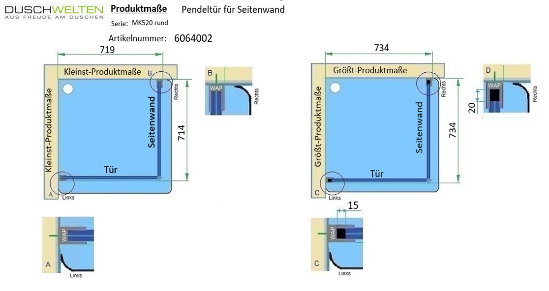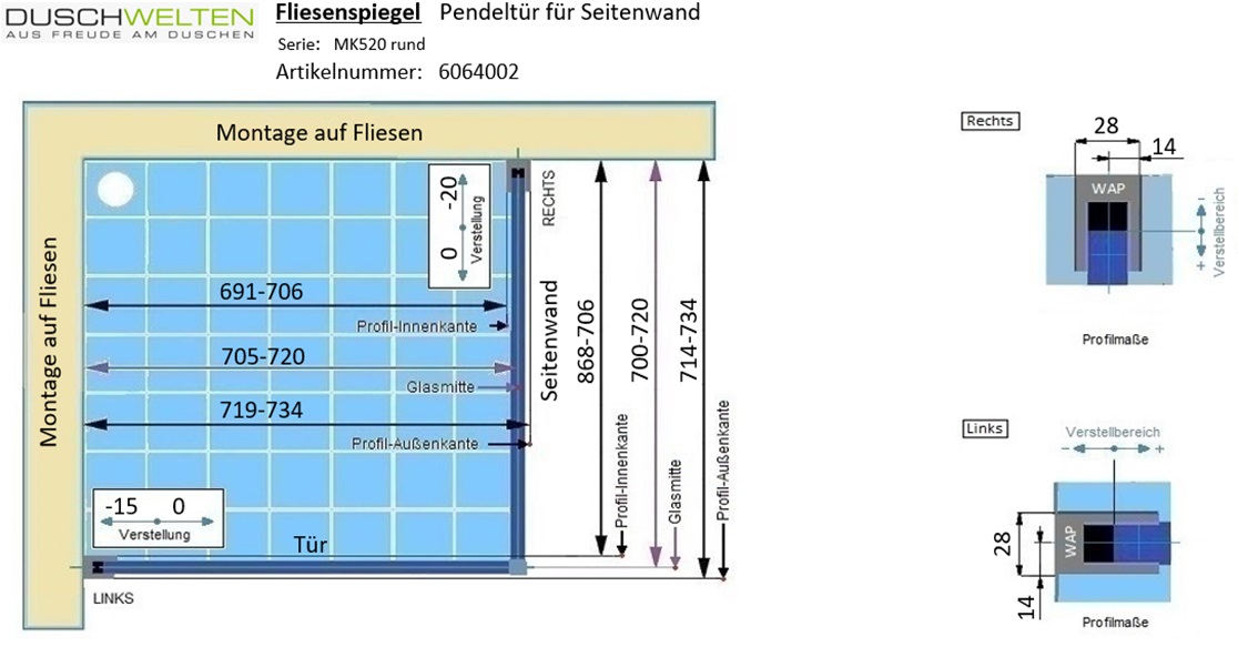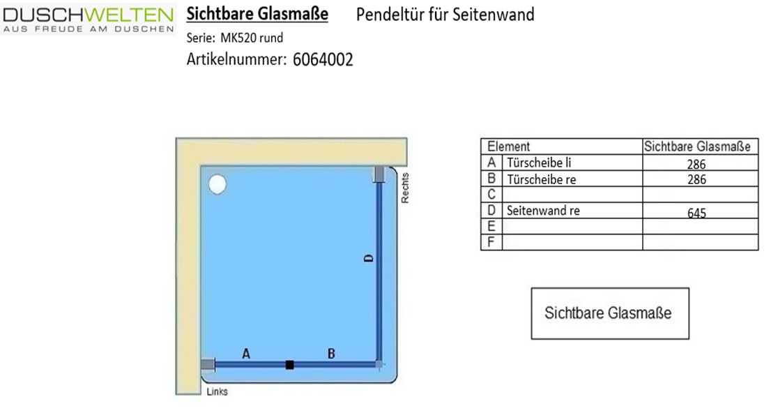 - Pendeltür zur Kombination mit Seitenwand (Typ 6118 rechts / 6074 links)